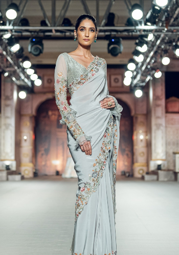 Shyamal Bhumika Pinkvilla The coming together of international accents of european and tropical blooms with the traditional indian silhouettes makes this line of ensemble truly special and perfect for destination weddings.