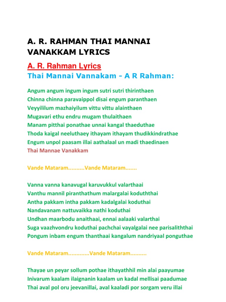 Tamil Thai Vazhthu Lyrics In Tamil Pdf - United we stand divided we fall.